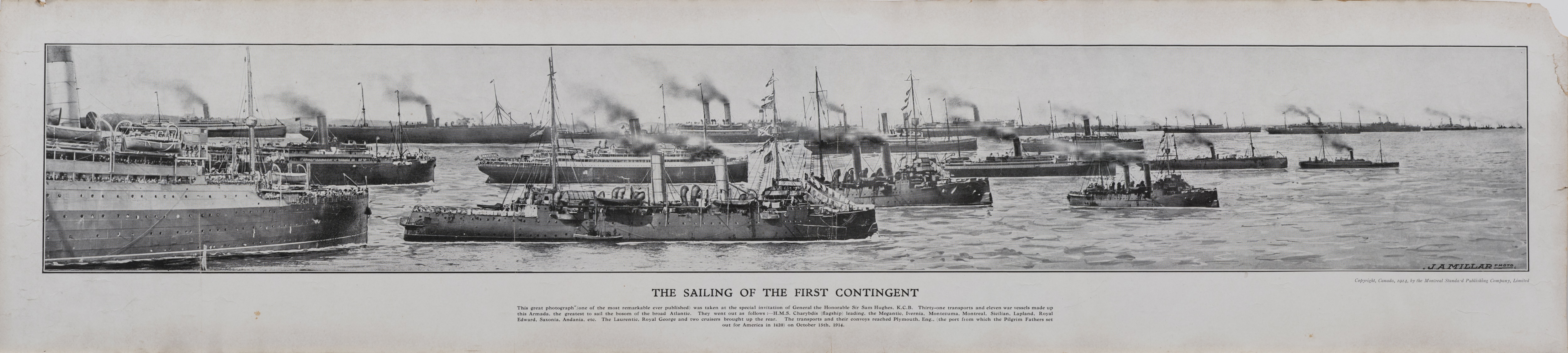 The Sailing of the First Contingent - 15 Oct 1914 Thirty-one transports and eleven war vessels (of the Royal Navy) made up this Armada