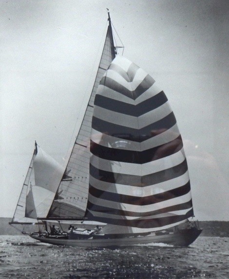 Helgoland was a yawl designed by Henry Gruber of Germany in 1936 and was built at the naval yard Burmester Yacht of Bremen. From the onset, she was a race winning sailing vessel and in 1939 she was the first German sailboat to win the "Hawke Trophy" putting to end 40 years of British supremacy in this race. With the onset of WW II, she was transferred to the Kreigsmarine as a school ship. After the war, the Royal Navy took over Helgoland as a war prize and renamed her PICKLE to honour the sailing vessel that brought back the news of Nelson's victory at Trafalgar. The RN did not have the funds to maintain a vessel of this class and after a short period she began to deteriorate. The decision was made to gift her to the RCN who at the time was better financially placed to maintain her.