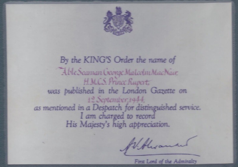 HMCS Discovery and HMCS Malahat. In civilian life, he was