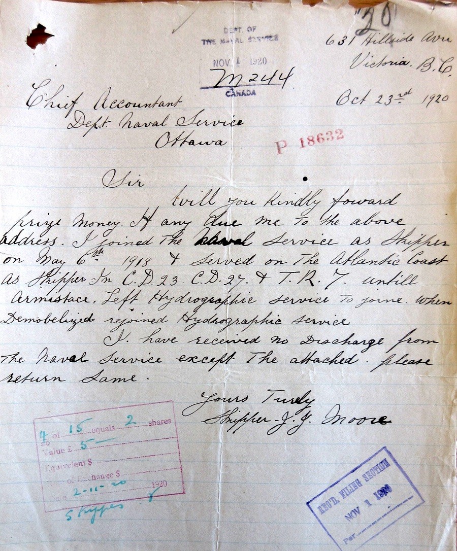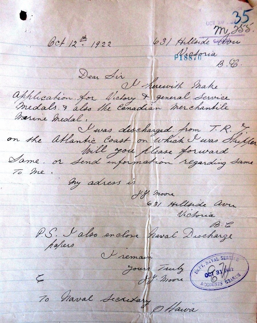 (HMCS Huron). He was mentioned in dispatches. He was a