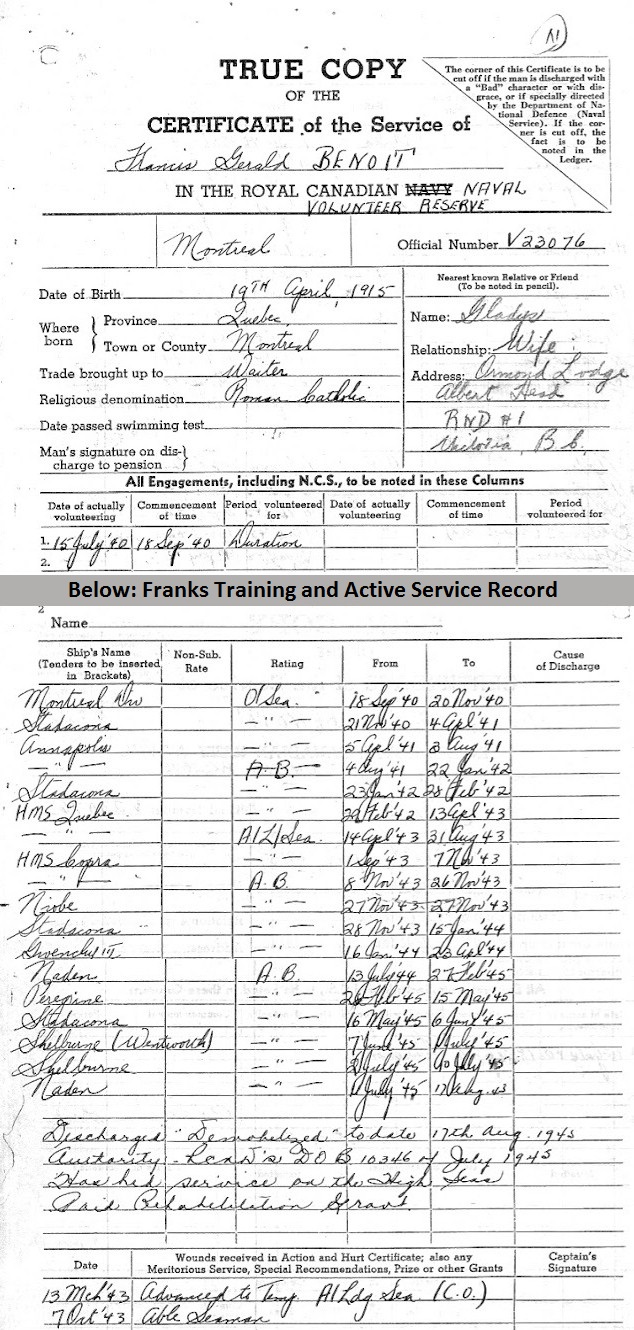 HMCS Athabaskan, Ottawa, Iroquois and Fraser. He is survived