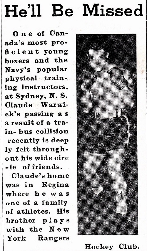 WARWICK, Claude Carl, AB, V107691, RCNVR - (28 Oct 1922 - 01 Mar 1945) - The son of Caroline Warwick of Regina, SK, he attended Scott Collegiate. Claude was a pageboy at the Saskatchewan legislature when he enlisted on 17 Nov 1942 at Regina, SK. Able Seaman Warwick died in a Montreal hospital due to a skull fracture. He was the victim of a motor vehicle accident on the east coast. He is buried at the Regina Cemetery, Regina, SK.