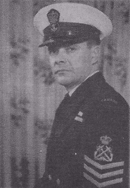 Petty Officer Cook Reginald Alfred Hughes a veteran of the last war, who was among the victims of the fire in St John's, Newfoundland, Dec. 12, 1942. Born in Worcester, England 49 years ago, he joined the British navy and was with the grand fleet in the battle of Jutland. Retiring from the navy in 1920 he came to Canada, residing with his sister, Mrs. C. C. Badgley, 496 Warsaw Avenue, Winnipeg. Called up from the Naval Reserve in September, 1940 he had been on active service with the Royal Canadian Navy as petty officer until his death. Twelve weeks ago he married Miss Thelma Patterson, of Vancouver. He was a member of the Fraternal Order of Engles. His father, Alfred A. Hughes, was killed in one of the German air raids on London.