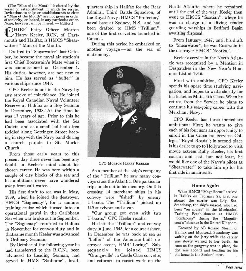 Victoria, then he joined the Canadian Aircraft Carrier, The H.M.C.S. Puncher.