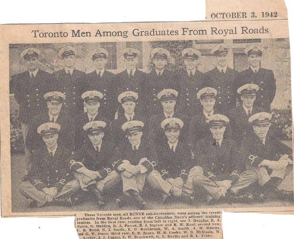 Canadian Navy Volunteer Reserve in 1943 at age 18. He trained at Port Arthur,