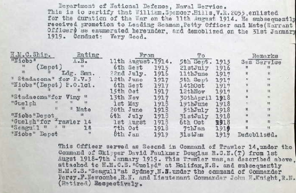 HILLS, William Spencer VR-2055, RNCVR (served 11 Aug 1914 - 31 Jan 1919 ) /