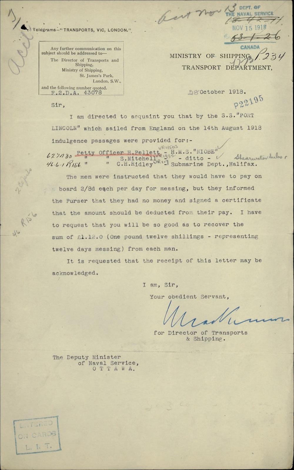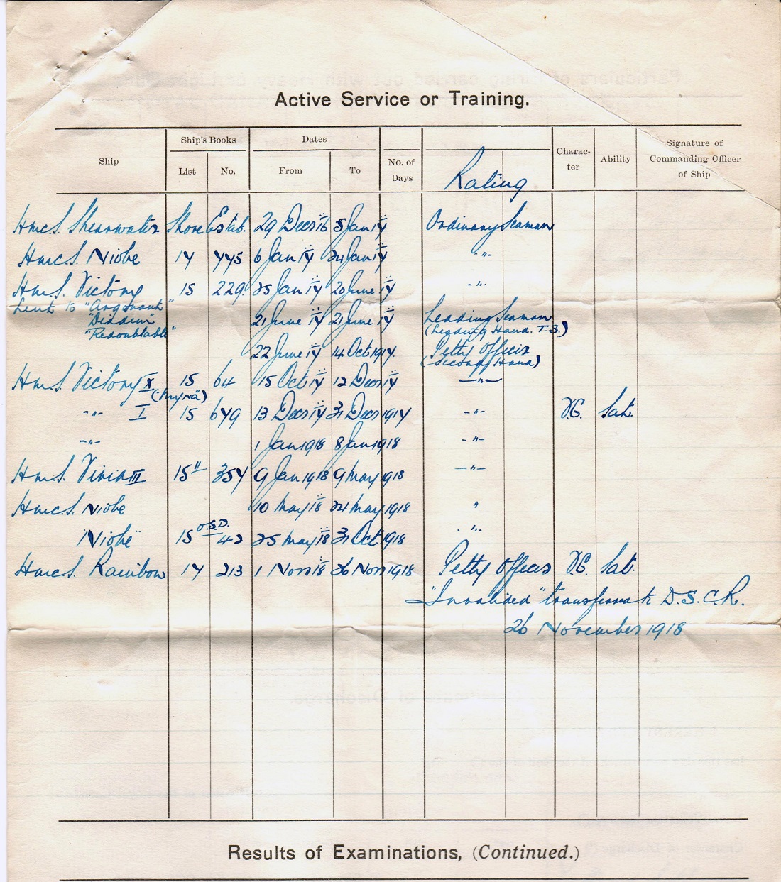- Served in ORIOLE for her coast transfer from Halifax to Esquimlat