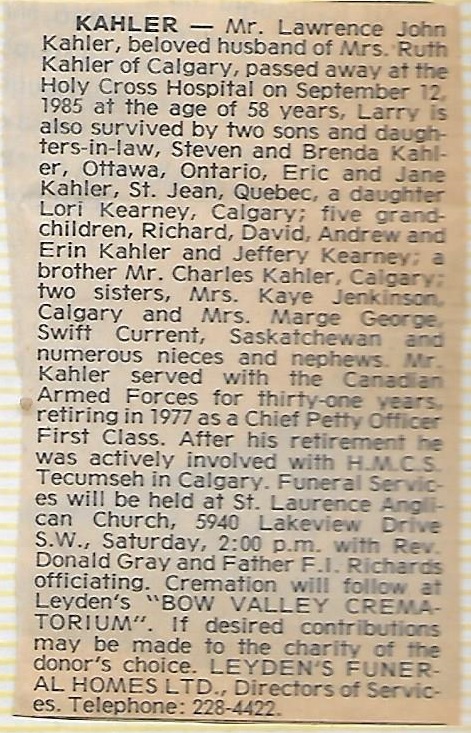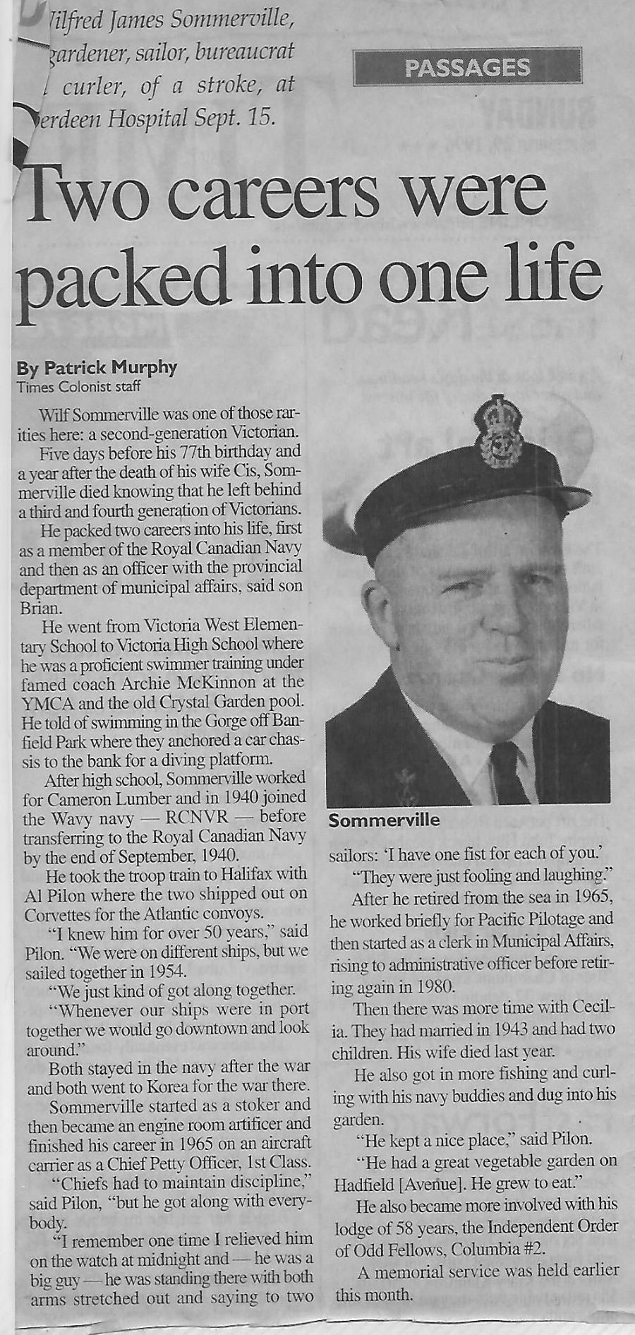Bill's memory may be made to the HMCS Sackville Memorial Trust Fund