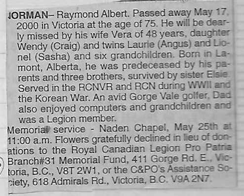 (Jimmy), Telegraphist - Died 30 Mar 2004, Vancouver, BC.