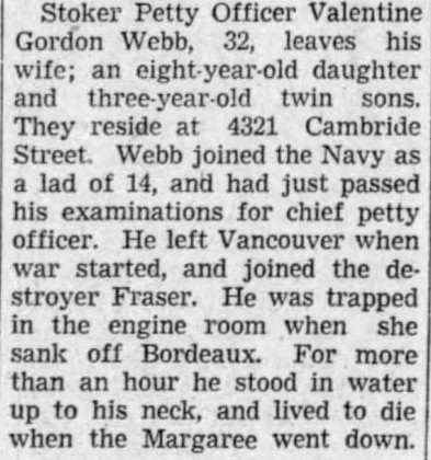 Kenneth, Sto PO, 21344, RCN, MPK - 22 Oct 1940, HMCS MARGAREE -