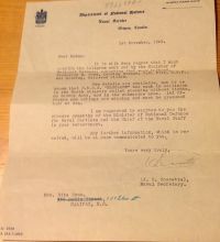 October 03, 1938 at Esquimalt, British Columbia, left a wife Jane F.