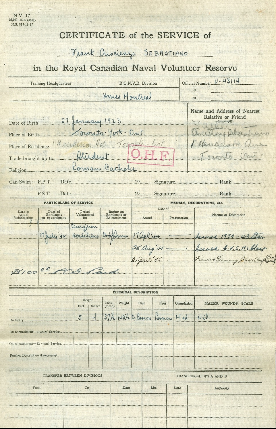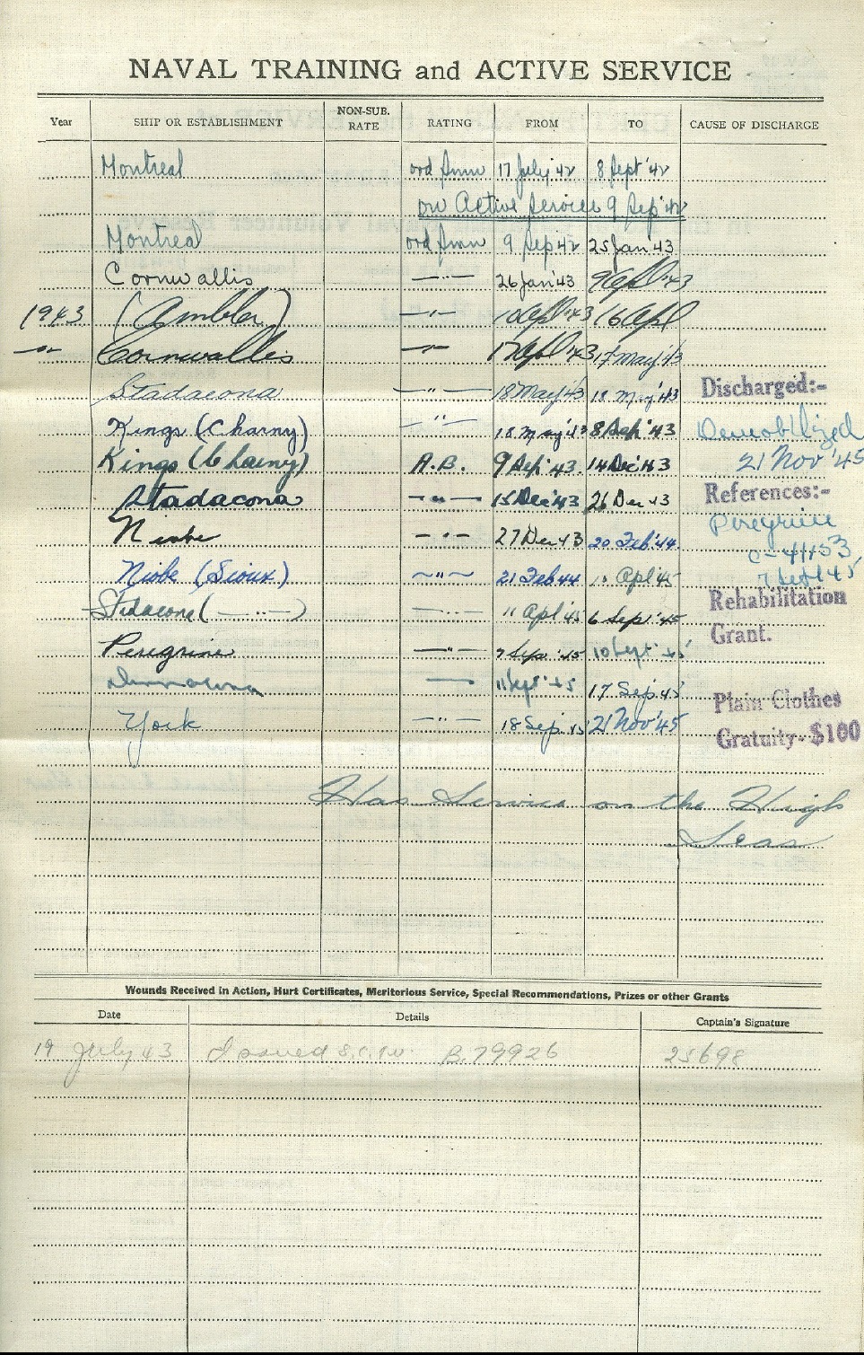 - Served in Charny 09 Sep 1943 - 14 Dec 1943 as an AB.AA3, RCNVR