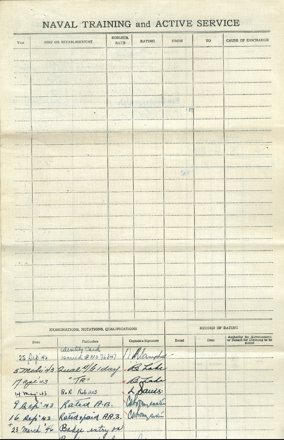 - Served in Ambler while in training at HMCS Cornwallis 10 Apr 1943
