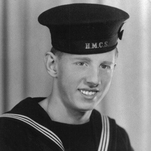 Ken grew up in Saskatoon where he volunteered in 1942 for the RCNVR and then as a regular, after a brief period on civvy street when demobilized at the end of WWII. During the Second World War he served on various Bangor class minesweepers on both coasts, and the River class frigate HMCS Poundmaker. Ken made Stoker Petty Officer in 1944.