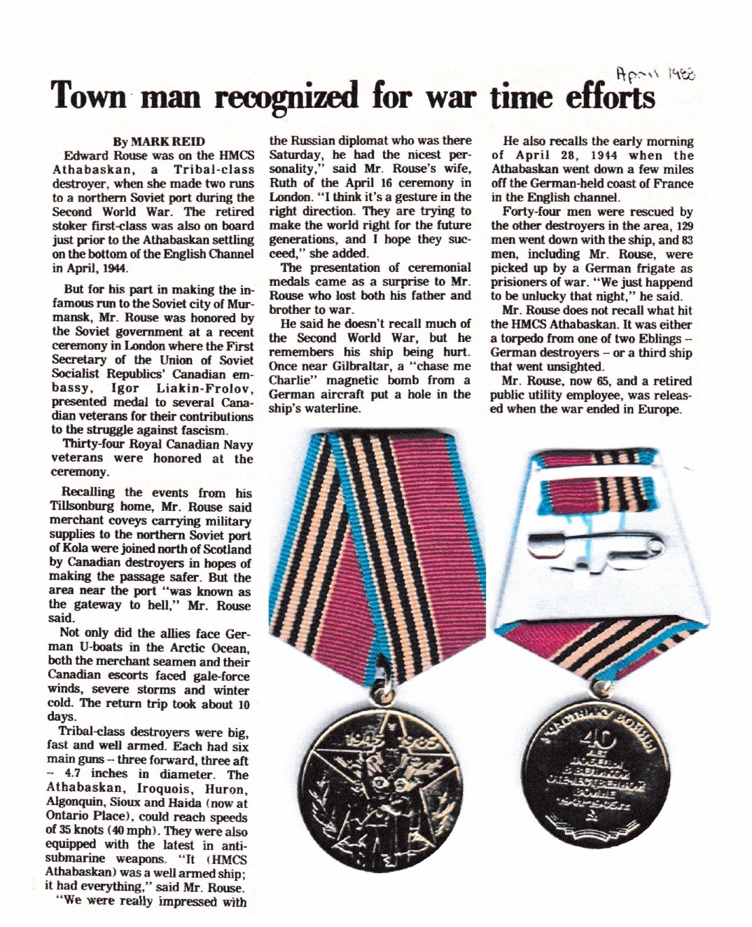 - Survived the sinking of Athabaskan. Captured by the Germans -