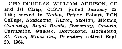 served his time aboard various corvettes (HMCS Arnprior, Chebogue, and St.