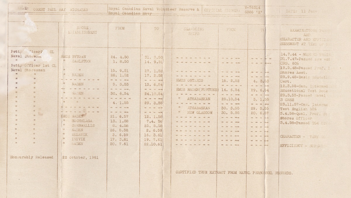 - Served in Nootka in 1947 as Lt, RCN, NavO // Appointed Drafted