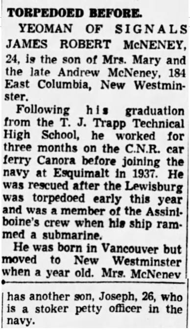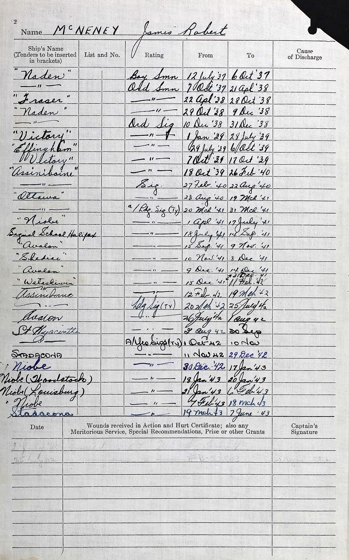 - Served in ASSINIBOINE 18 May 1940 - 24 Aug 1940 as an AB,
