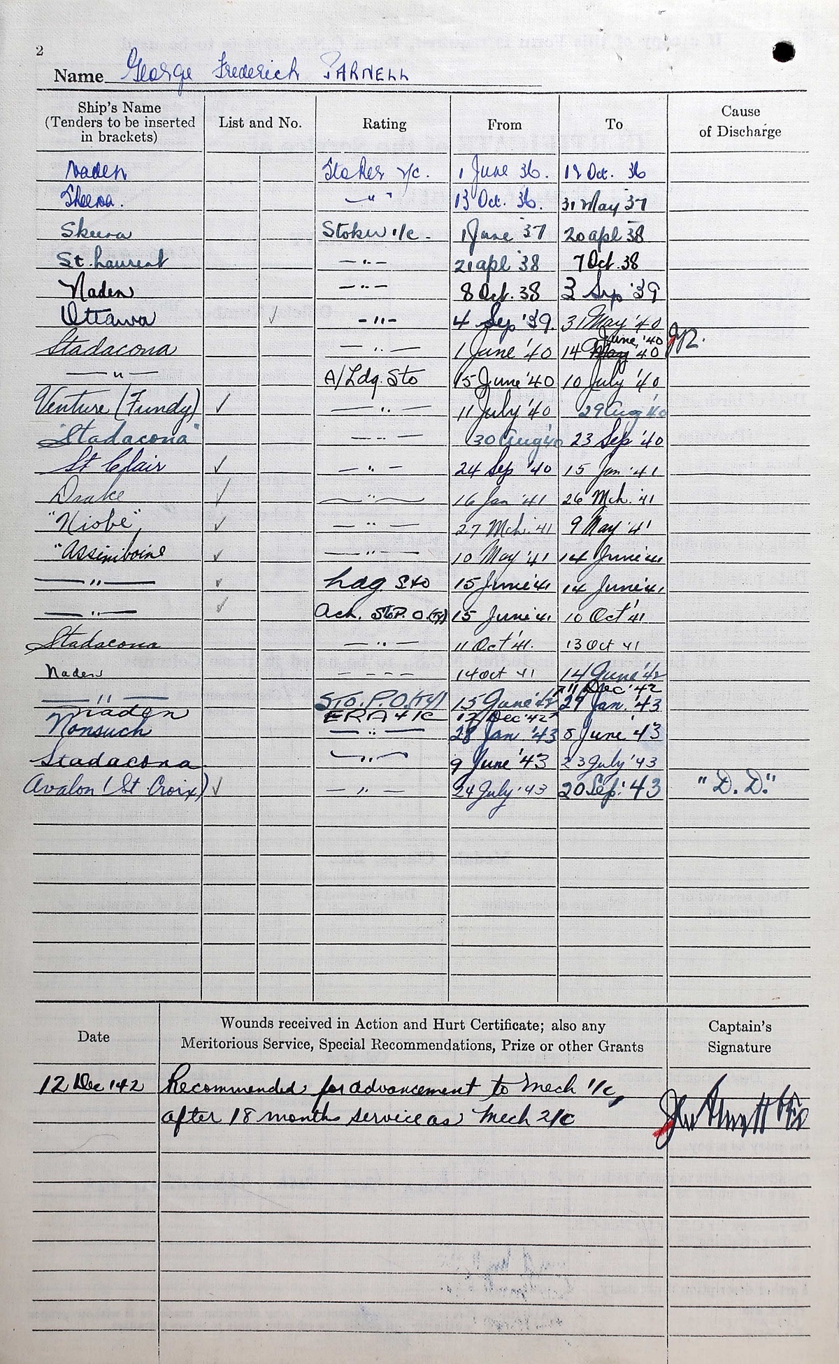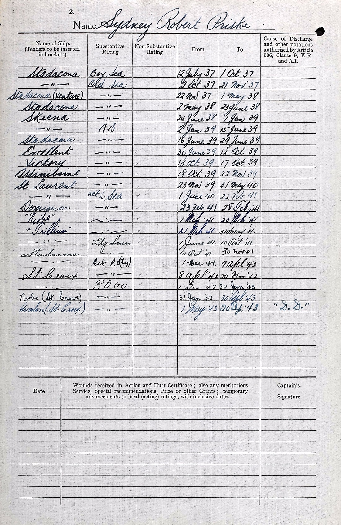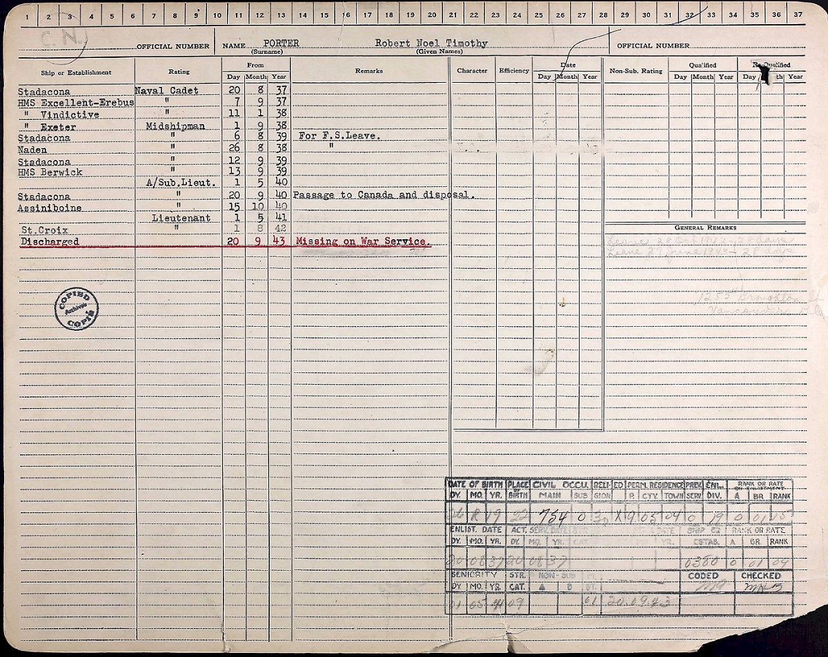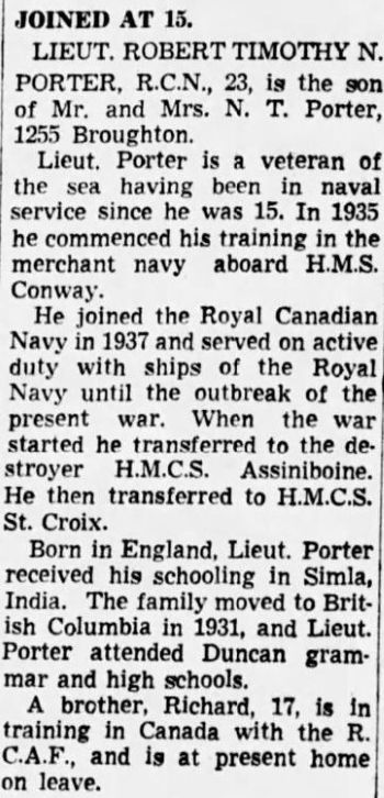 - Served in Skeena 03 Jun 1939 - 08 Apr 1940 as an OS, RCN