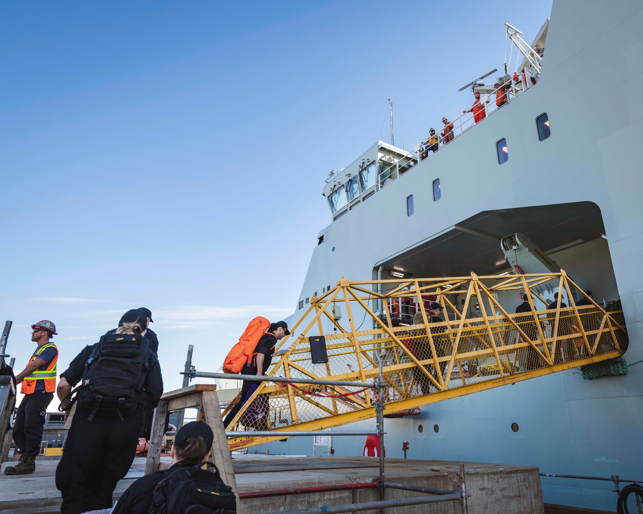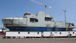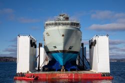 The future HMCS ROBERT HAMPTON GRAY after being rolled out of the assembly hall at Halifax Shipyard - 16 Aug 2024 Courtesy of Barry Gerrard