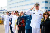 HALIFAX, NS, August 9, 2025 – Today marked the official Naming Ceremony of the future HMCS Robert Hampton Gray, the sixth and final Arctic and Offshore Patrol Ship (AOPS) for the Royal Canadian Navy. Dating back centuries, the naming of a ship is steeped in tradition and believed to bring good luck and safe travel to the vessel and crew. The ship’s sponsor, Jane Underwood, a niece of Lt Robert Hampton Gray, officially named the ship during a ceremony attended by Vice-Admiral Angus Topshee (Royal Canadian Navy); Lieutenant-General Jaime Speiser-Blanchet (Royal Canadian Air Force); The Honourable David McGuinty, Minister of National Defence; The Honourable Joël Lightbound, Minister of Government Transformation, Public Works and Procurement; H.E. Kanji Yamanouchi, Japanese Ambassador to Canada; as well as descendants of Robert Hampton Gray, the ship’s company, and Halifax Shipyard shipbuilders. In naval tradition, Underwood broke a bottle of L’Acadie Vineyards’ Prestige Brut sparkling wine against the bow of the ship, declaring, “I name you Robert Hampton Gray. Bless this ship and all who sail in it.” (Source: Irving Shipbuilding Inc.) Note: The original article on the Irving Shipyards website lists Jane Underwood as a descendant of Lt Gray, however, she is in fact his niece and the entry has been changed here on For Posterity's Sake.