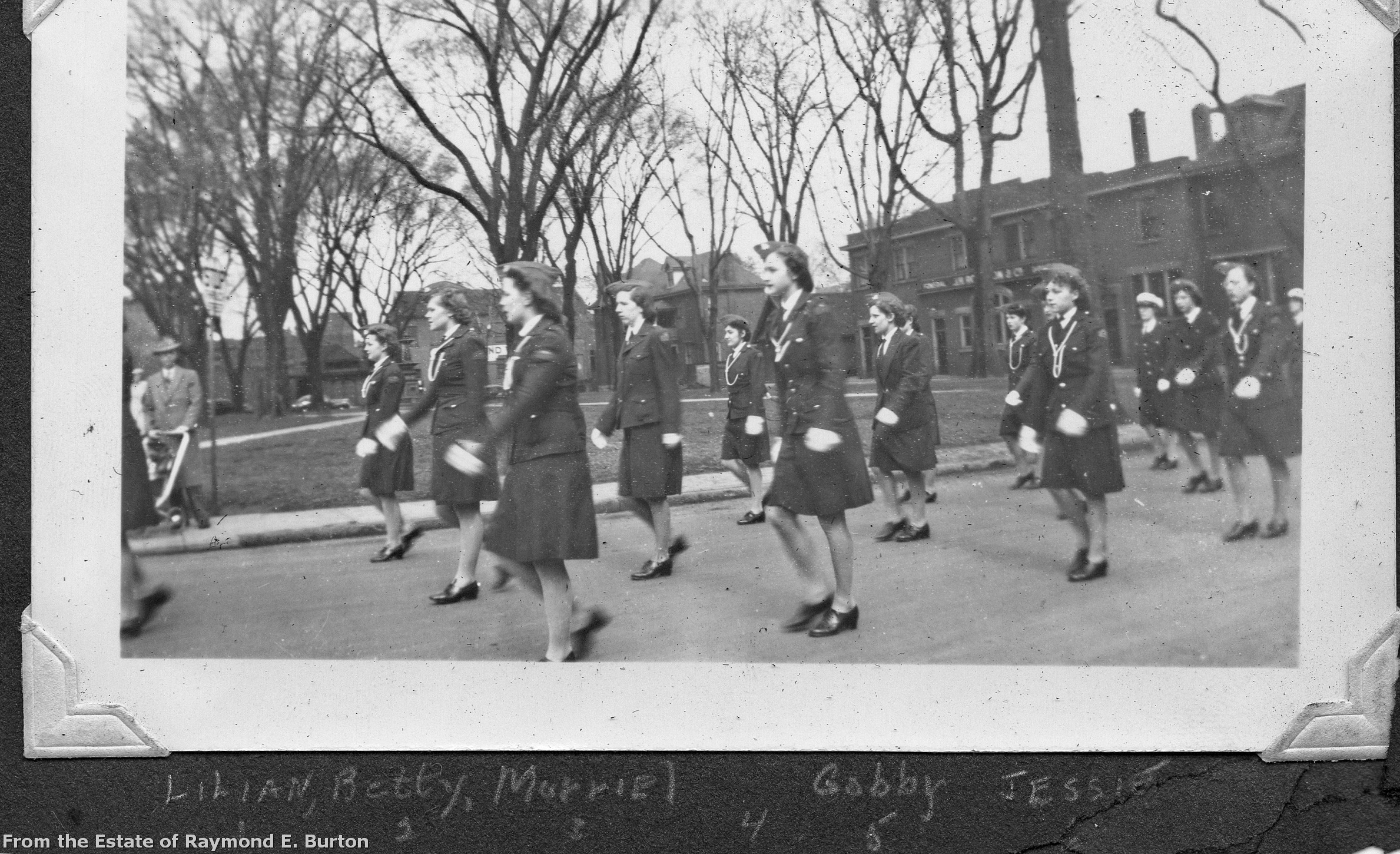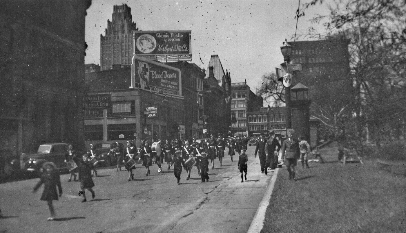 (2) Lillian, Betty, Muriel, unknown, Gabby, Jessie (6) Margaret on left (7) Mrs. Hest (8) Buglers (11) Lillian, Marg and Muriel - Hamilton Volunteer Naval Aid Corps (12) Marion Scott 07 May 1944