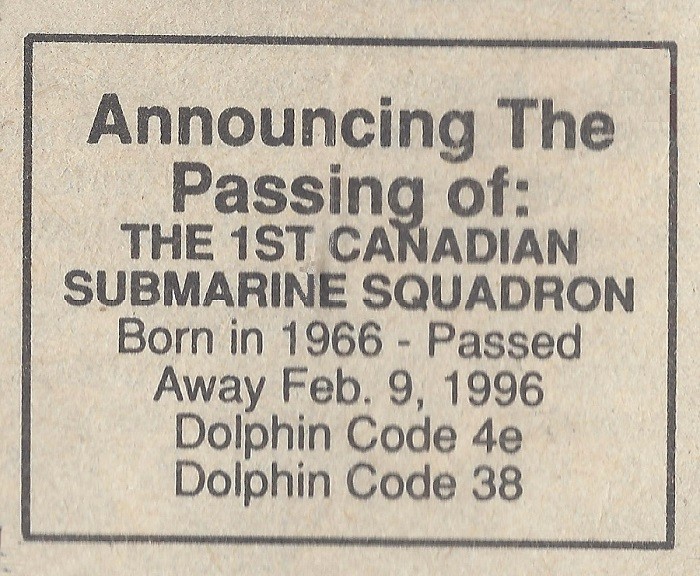 Canadian Submarine Squadron was commissioned on 22 Apr 1966. It