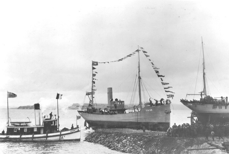 The launching of TR 35, Lauzon, Quebec, circa 1918 Click on the above photo to view a larger image