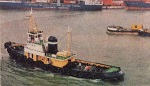 The tug HMCS ALBERTON was built in 1944 by Montreal Dry Docks Ltd. at Montreal QC. She was 104.5’ x 26.7’ x 11.2’ steel hulled. She was delivered to the RCN as ALBERTON (W48). In 1947 she was sold to the National Navigation Company, Sarl, Lisbon; re-named AVEIRO LX-11-RC and was employed in the port support service. In 2002 she was purchased by Fluvial and Coastal Shipping, Rui da Cruz and Julio de Cruz, Lda. In 2004 she was laid up and in 2005 transferred to Scrap recycling SA, Alhos Vedros. In 2008 she was broken up.