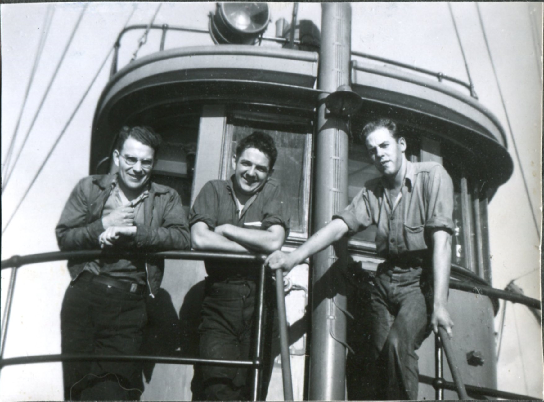 (GC02) Tug GLENDON (GC03) Crew of the GLENDON - Rear L-R: Sparks, Swain, Cookie, Tubbie; front L-R: Chief, George Collison (GC04) Crew of the GLENDON - L-R: George Collison, Tubby, Cookie (GC05) Crew of the GLENDON - L-R: Tubby, Tony, Joe, Lou (GC06) Unknown Petty Officer on the GLENDON