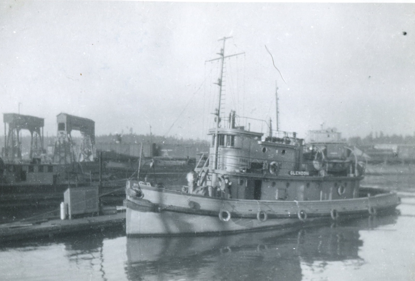 GLENDON operated out of Esquimalt until she was removed from service and sold in 1964. On 26 Mar 1946, GLENDON was paid off from the RCN and transferred to the Auxiliary fleet. However, on 12 Dec 1946, GLENDON was re-commissioned temporarily and manned by naval personnel "to provide adequate facilities for manoeuvring HMCS WARRIOR." By the early 1960, as designs were considered for the new Glen tugs, GLENDON was assigned as a tender to base operations at HMCS NADEN. Declared surplus on 13 Jan 1964, she was sold on 31 Mar 1964 to North Arm Transportation Ltd., and renamed North Arm Highlander. Used as a towboat, she was later resold, restored and renamed Golden Explorer. She was still on the Transport Canada registers in 2008.