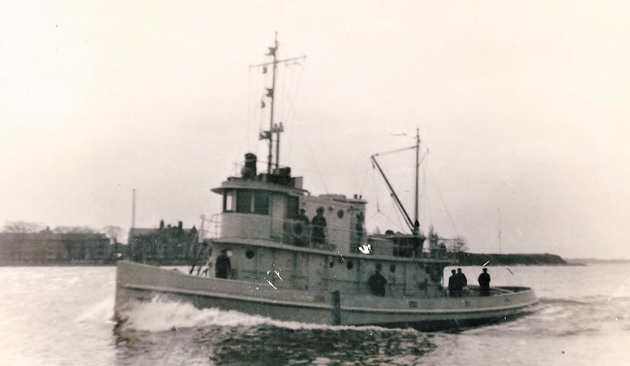 (DM12-DM13) Unknown sailors aboard HMCS GLENELLA (DM14) Doug Moore with shipmates on HMCS GLENELLA (DM15) Unknown sailors setting up what appears to be a phonograph aboard HMCS GLENELLA (DM16) HMCS GLENELLA towing a salvage barge