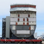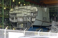 (BG01-BG03) The future HMCS WILLIAM HALL at the Irving Shipyards, Halifax, with her center and stern mega blocks positioned for joining together - 10 Jun 2022. The forward mega block is under construction. (BG04) The future HMCS WILLIAM HALL at the Irving Shipyards, Halifax, with her forward block positioned for joining - 06 Aug 2022 Courtesy of Barry Gerrard