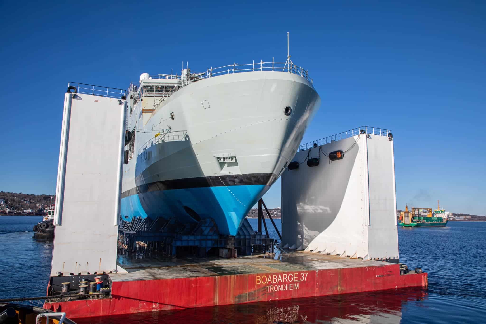 On 27 Nov 2022, the future HMCS WILLIAM HALL was floated up in Bedford Basin, Halifax, NS.