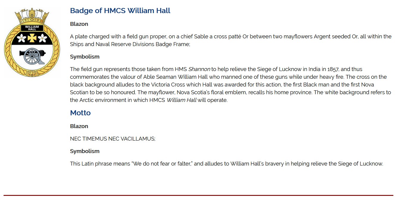 WH000 (WH000) The badge of HMCS WILLIAM HALL, its meaning, and the ship's motto