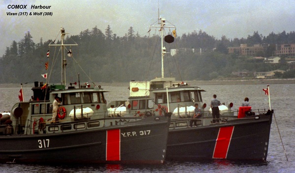 YFP-317, also known as CFAV VIXEN operated out of the Small Boats Unit (SBU) at CFB Esquimalt. In of 1976 she was based it out of HMCS QUADRA in Comox, BC, for the months of June-July-August operating primarily in Desolation Sound and Georgia Strait as a training ship. In September 1976, YFP-317 was returned to SBU at CFB Esquimalt.
