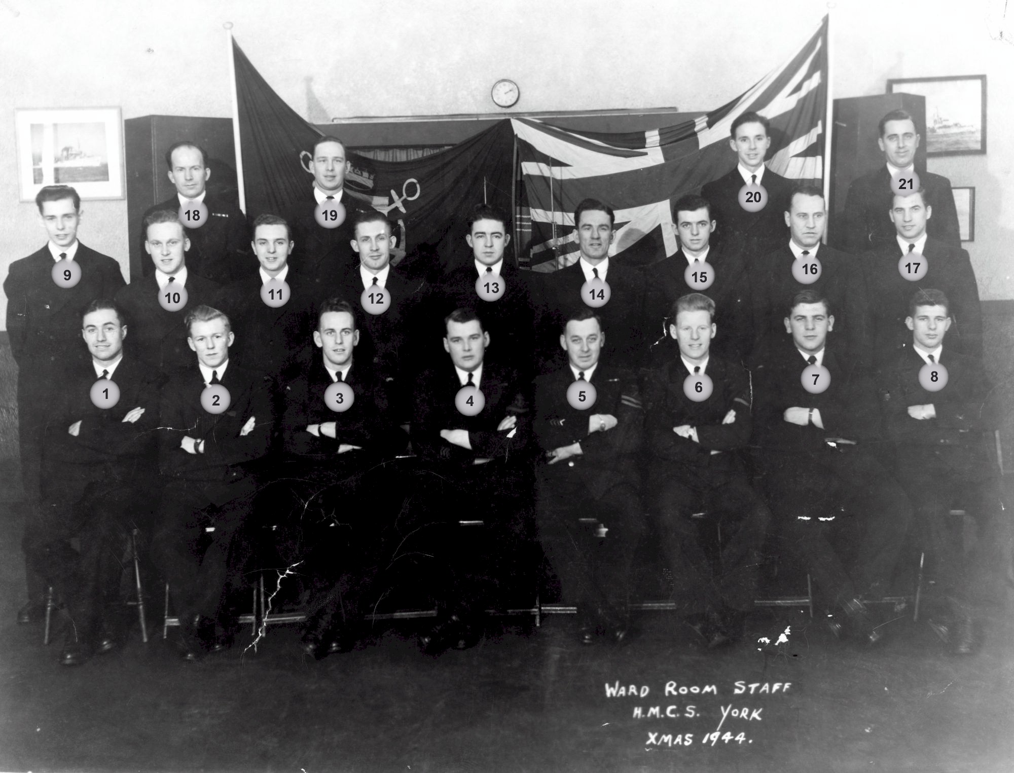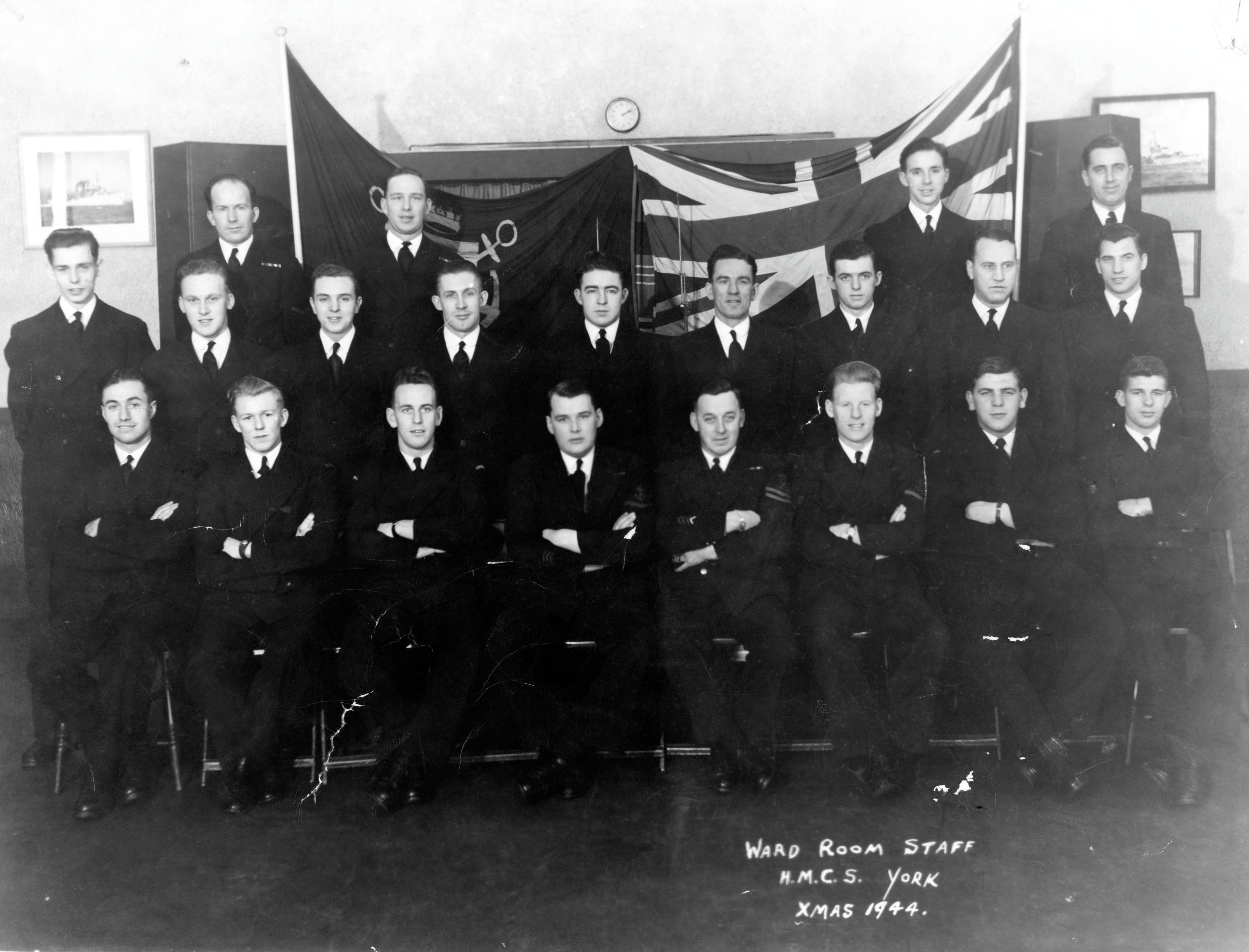 HMCS YORK Wardroom Staff Christmas 1944 Click on the above photo to view a larger image Click here to view the photo with sailors numbered for identification
