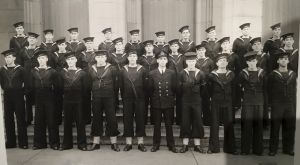 HMCS York Naval Field Gun Crew - Aug 1943 Frank Belcher, 7th from right Source: Ian MacNeill Collection, Ancestry.com