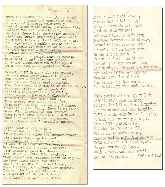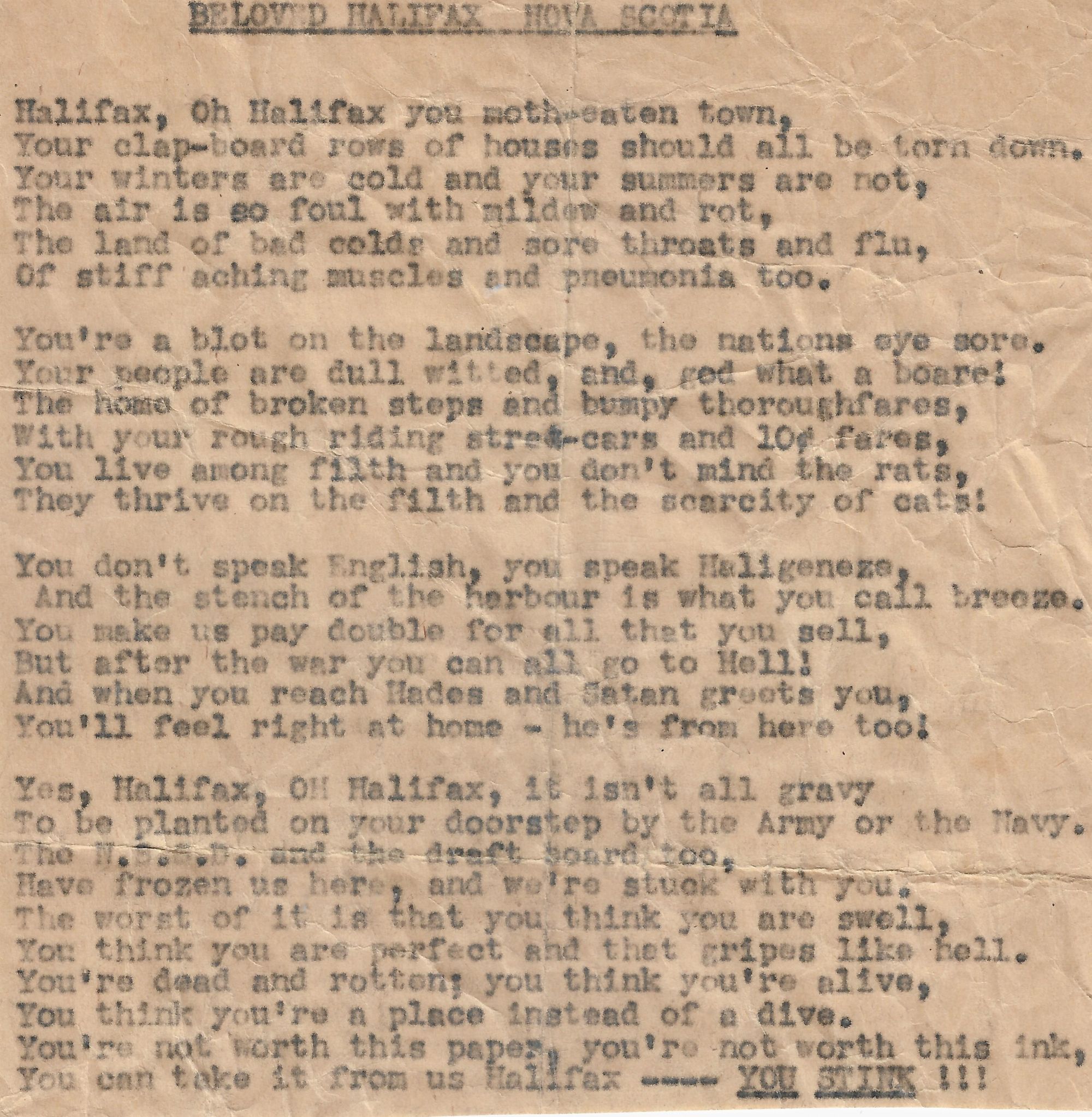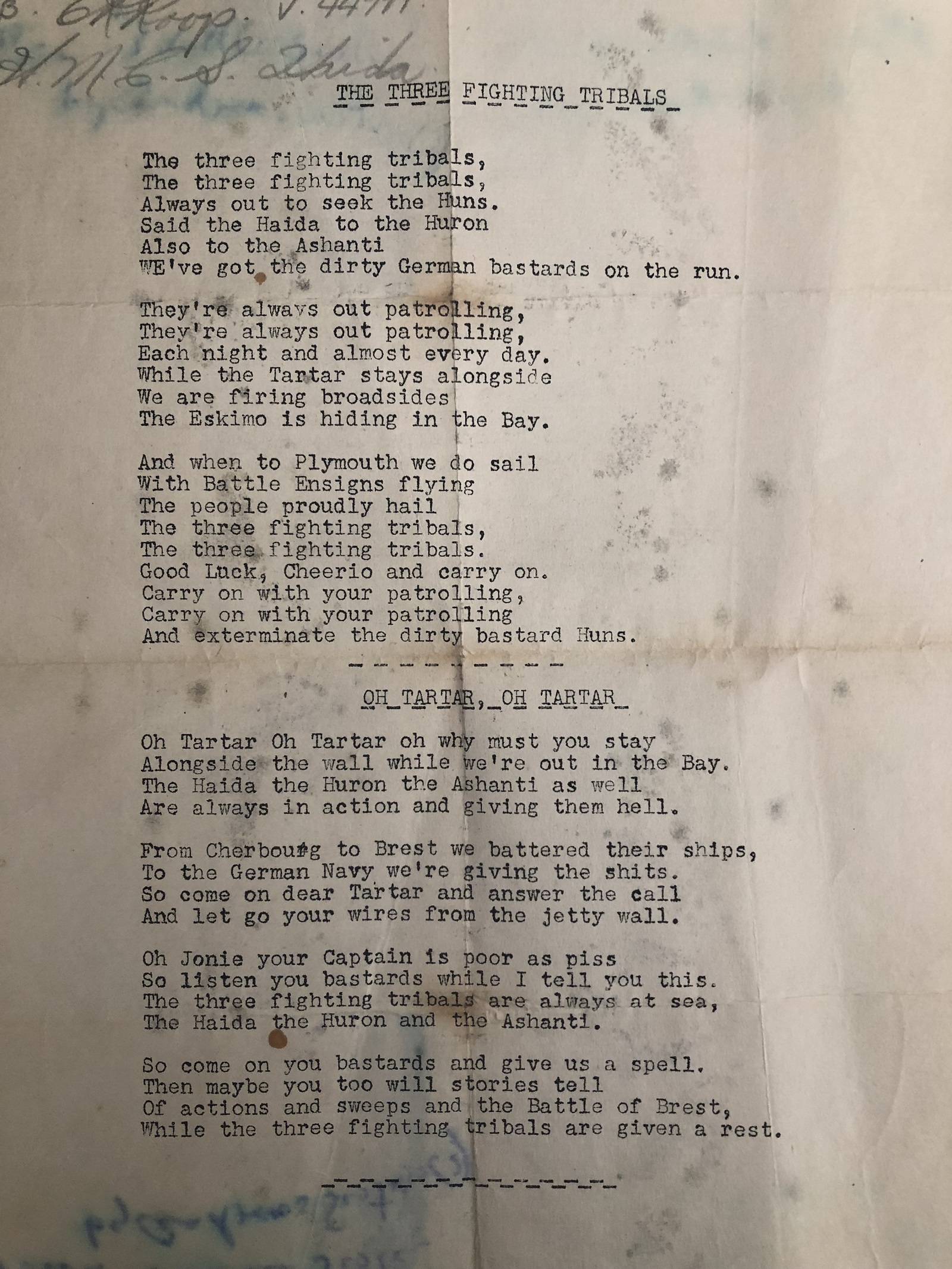* Loss and Revenge - the sinking of HMCS ATHABASKAN and the revenge exacted on German minesweepers by R.E. Armstrong, PO, RCN * OM's Course Nineteen by John Thompson * Poem about a sailor who joined HMCS HAIDA by R.E. Armstong, PO, RCN * Poem about HAIDA'S crew by R. E. Armstong, PO, RCN * The Phantom Fleet by Buster Brown * Three Fighting Tribals (HAIDA, HURON, ASHANTI) * Beloved Halifax Nova Scotia ..... You Stink!