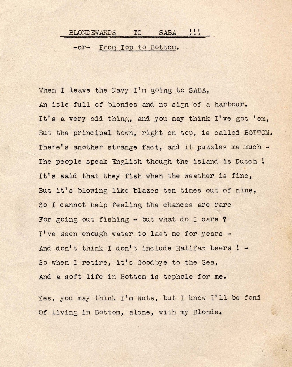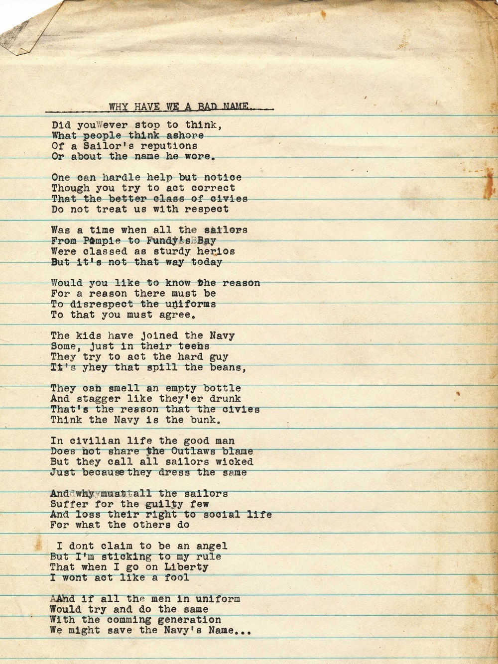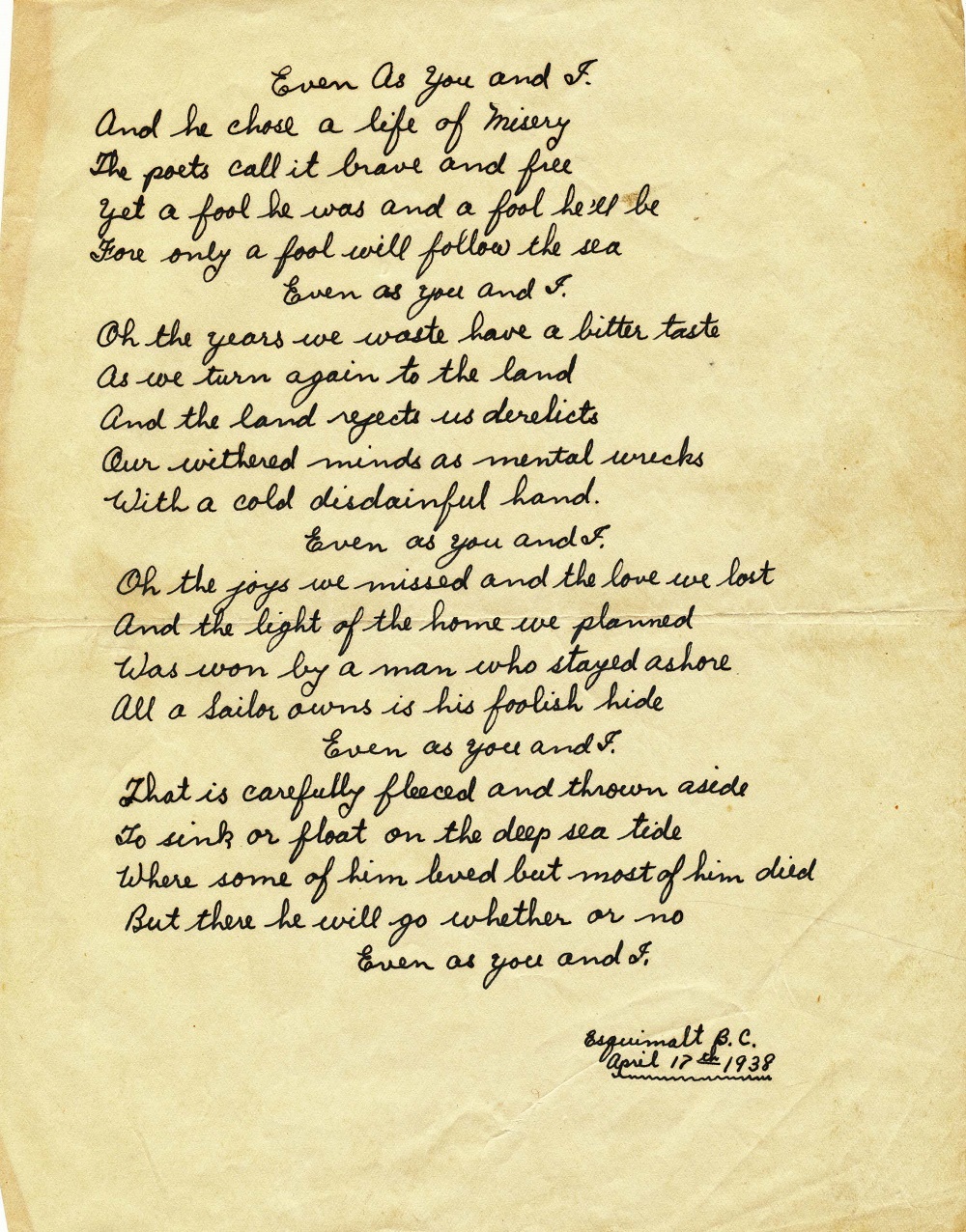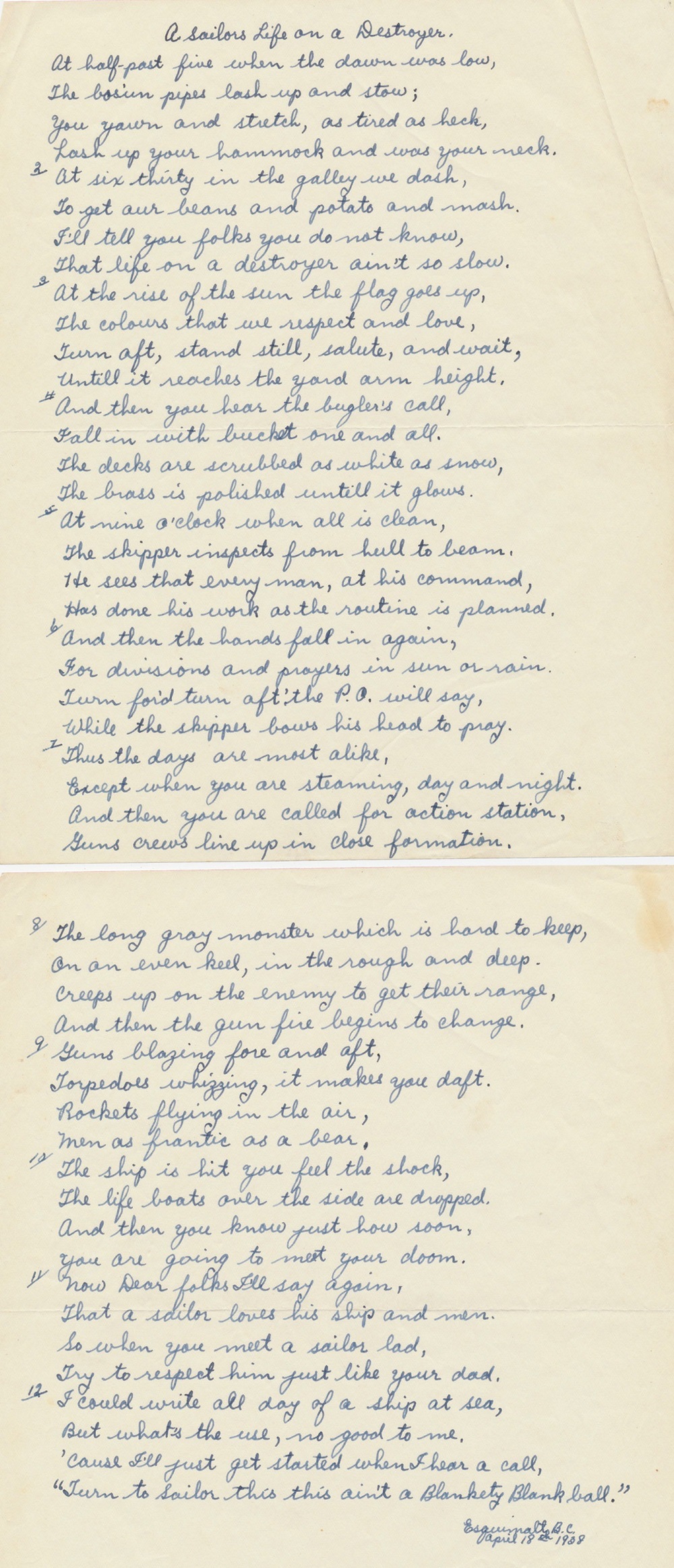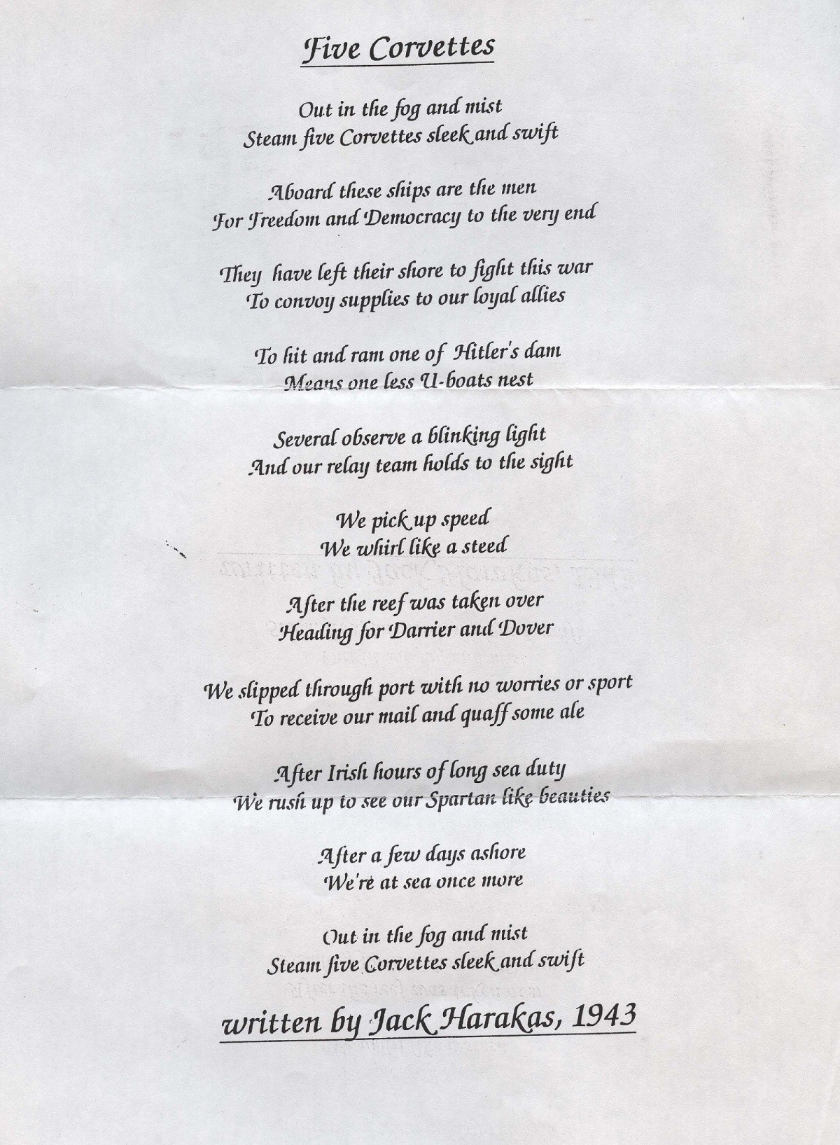 Five Corvettes written by Jack Harakas - 1943 From the collection of Hugh Cowley, Able Seaman, RCNVR Courtesy of Scott Cowley