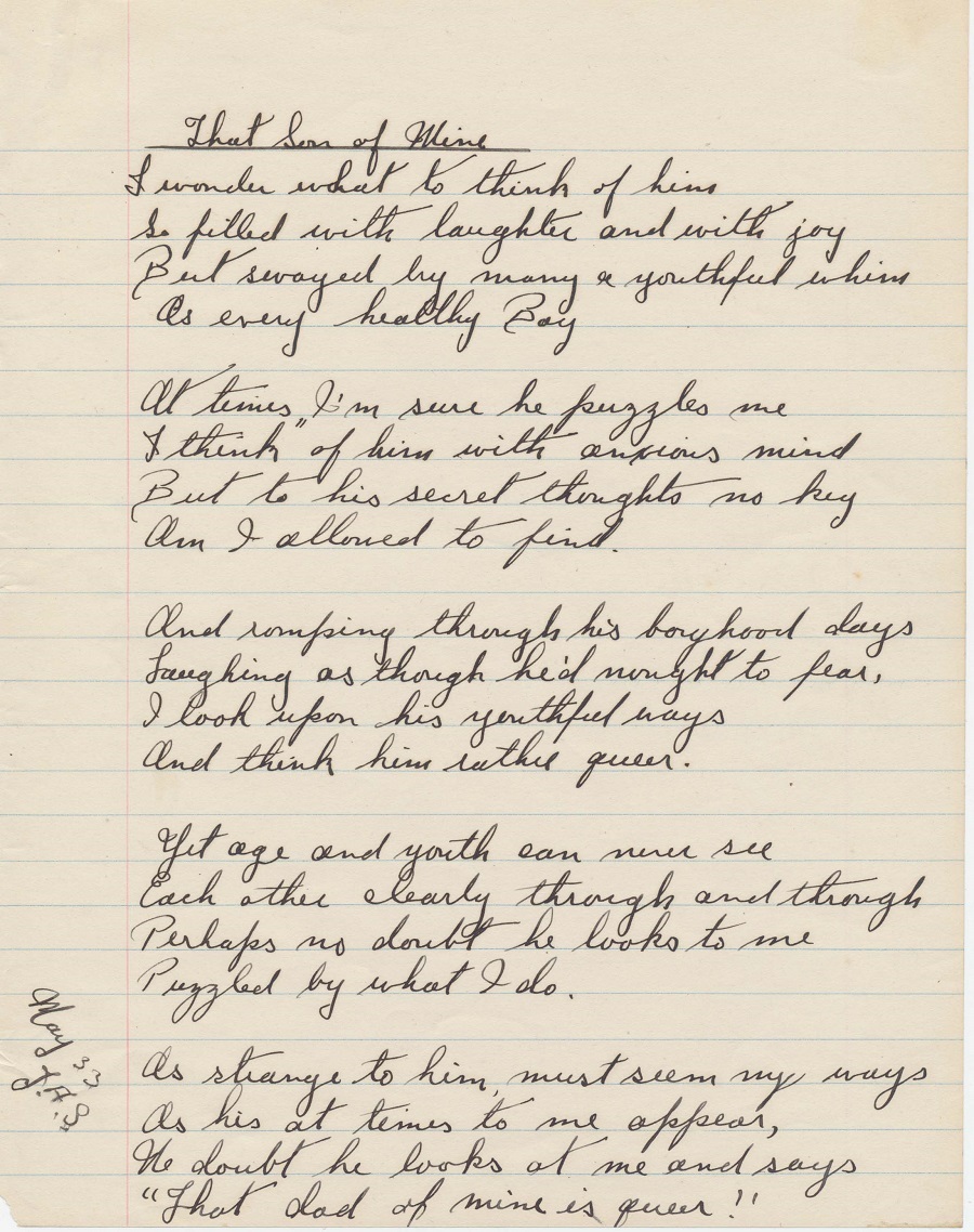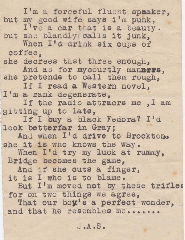 Poems (below) from the collection of James Senior Note: some of these poem were written by James Senior, some collected from other sources