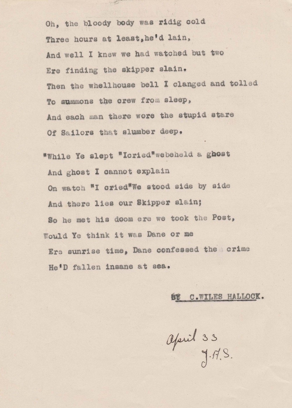 (JS32) A Destroyer at Sea (JS33) A Sailors Life on a Destroyer (JS34) Why Have We A Bad Name (JS35) Discontented (JS36) The Tale of Old China