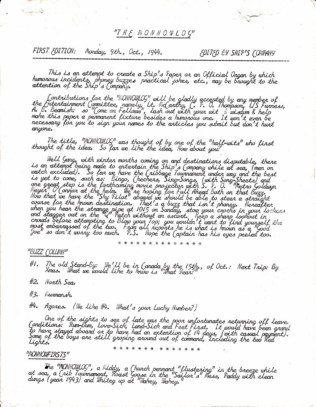 The Ship's Weekly Newspaper - HMCS Monnow K441