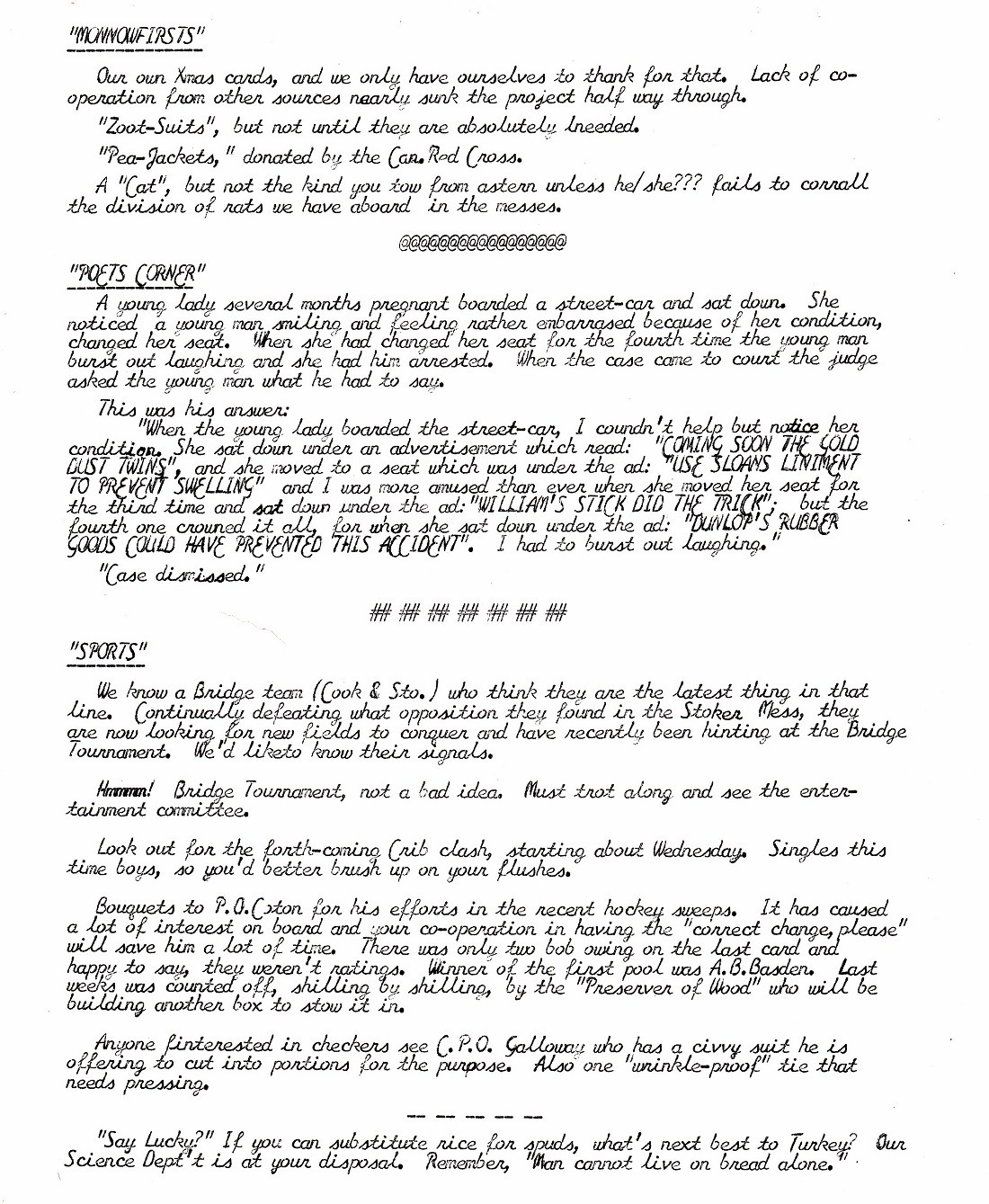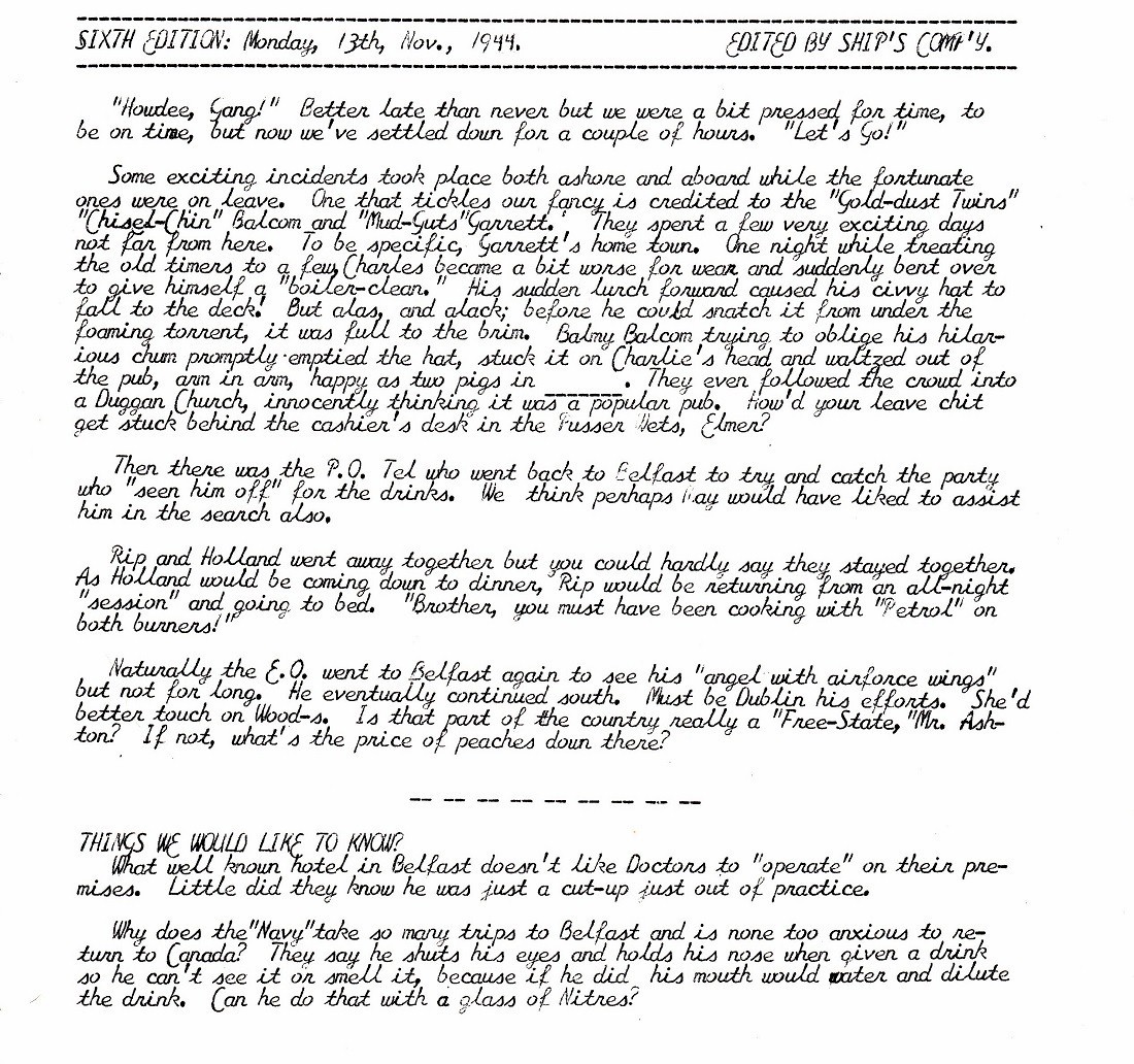 The Ship's Weekly Newspaper - HMCS Monnow K441