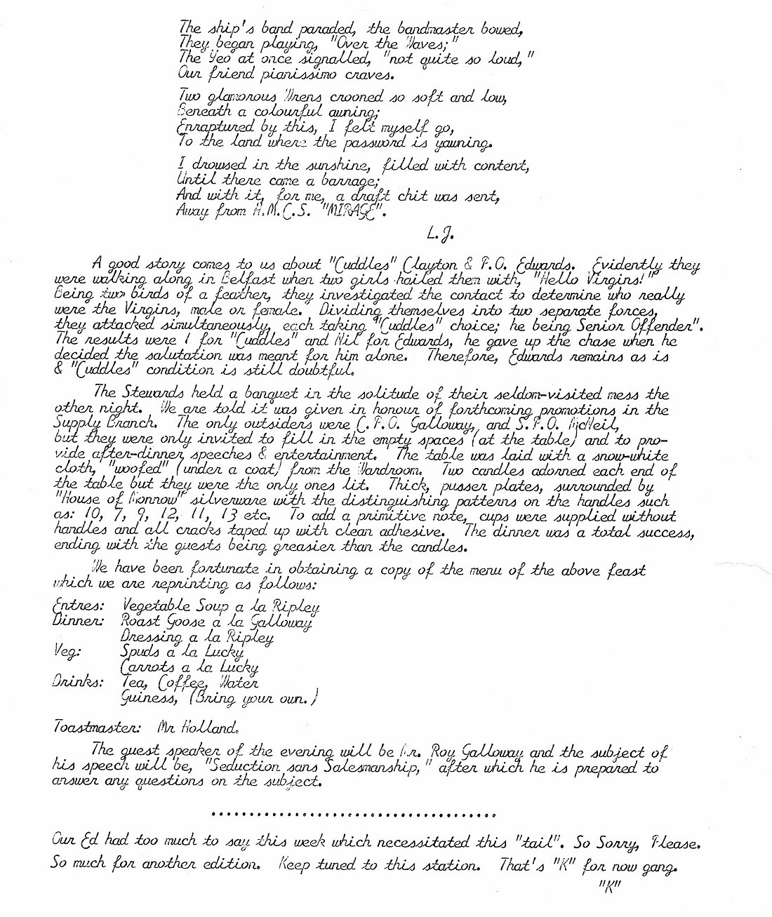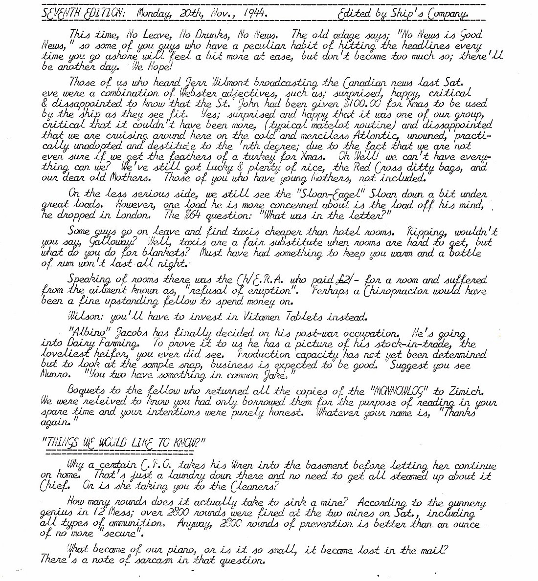 The Ship's Weekly Newspaper - HMCS Monnow K441