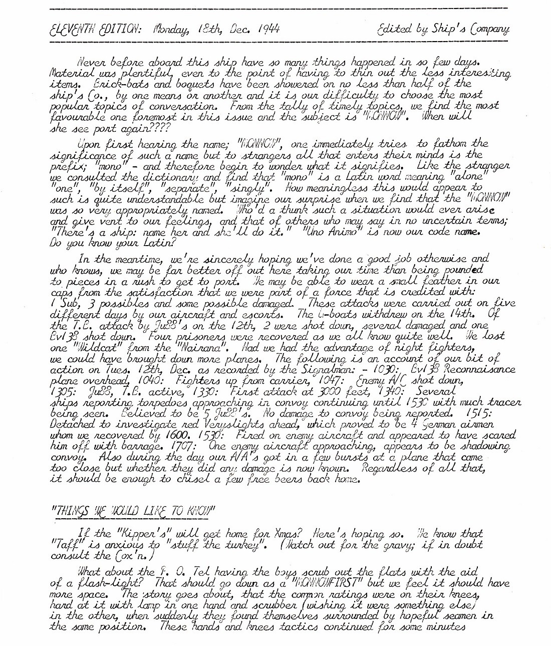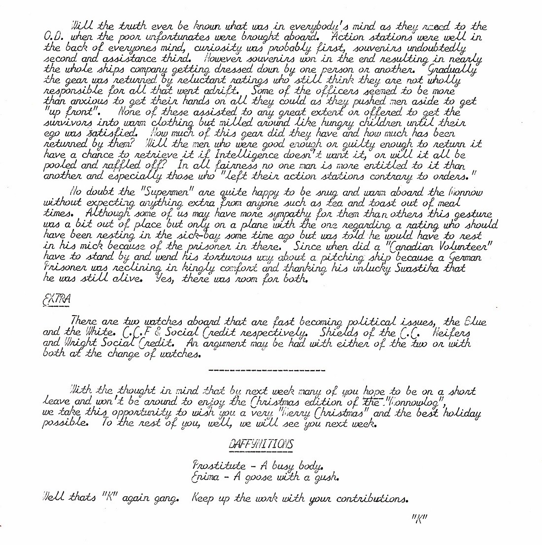 The Ship's Weekly Newspaper - HMCS Monnow K441