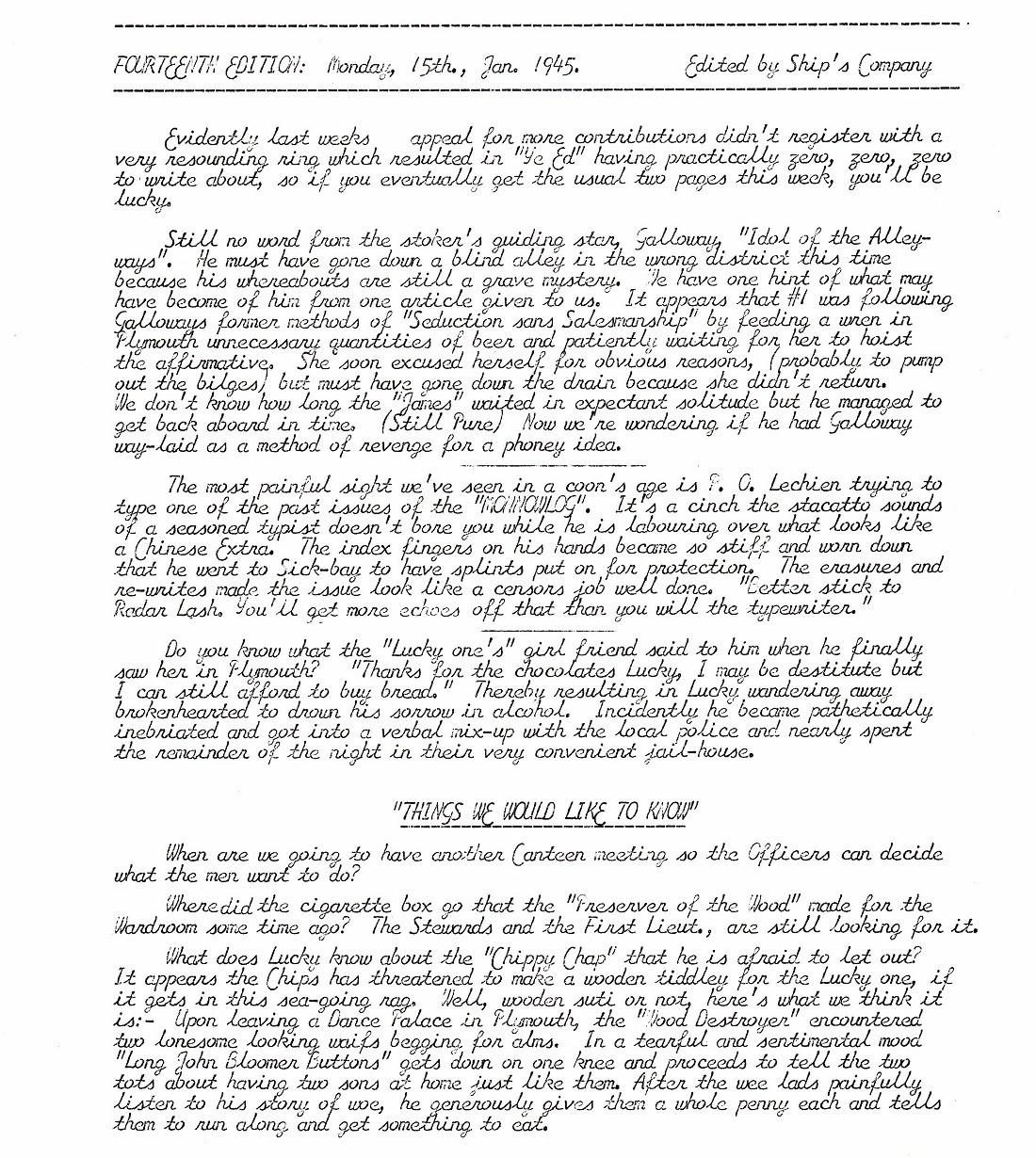 The Ship's Weekly Newspaper - HMCS Monnow K441