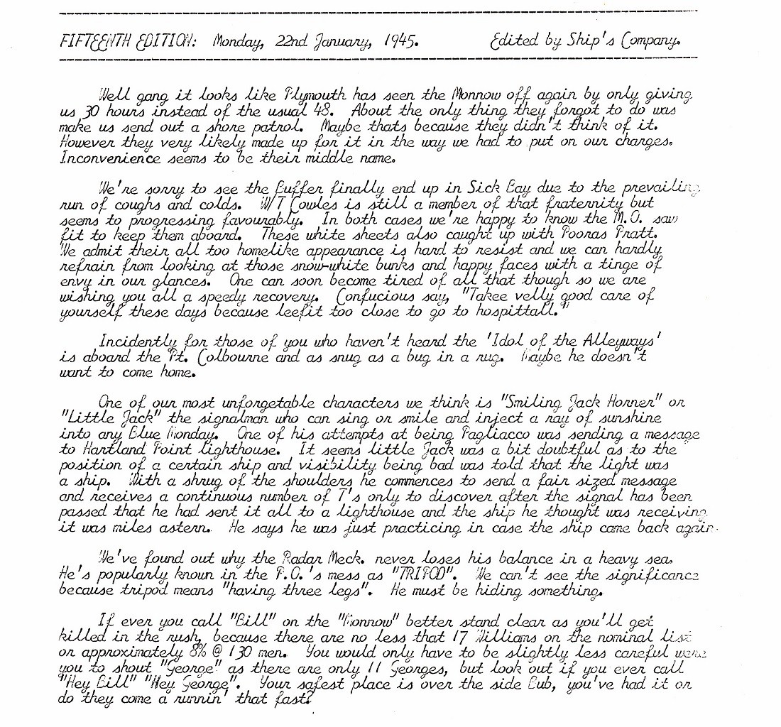 The Ship's Weekly Newspaper - HMCS Monnow K441