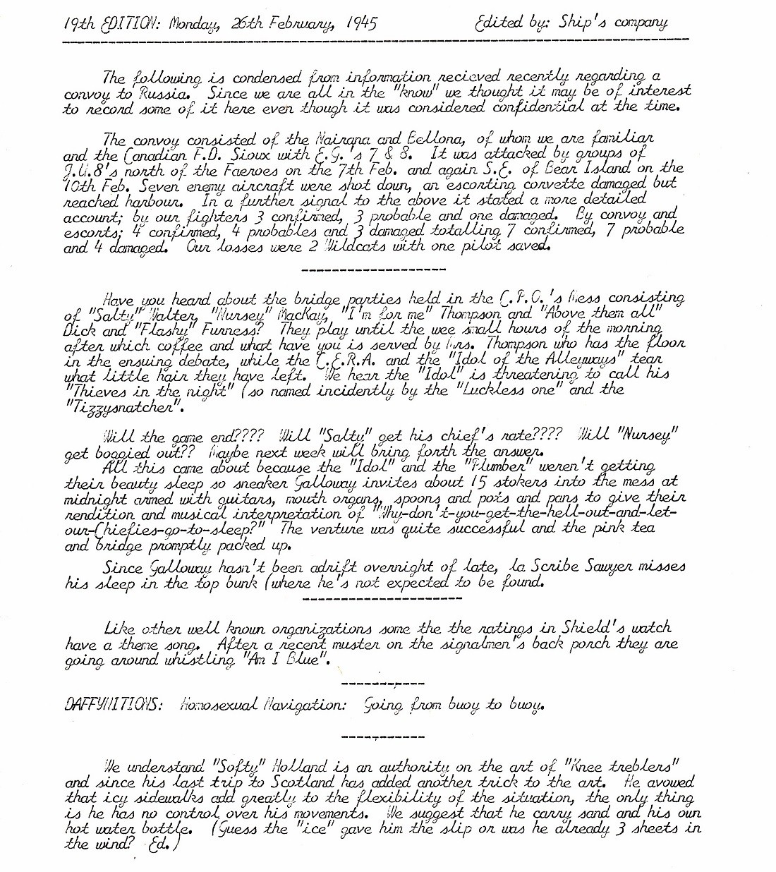 The Ship's Weekly Newspaper - HMCS Monnow K441