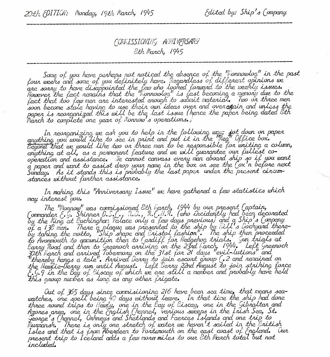 The Ship's Weekly Newspaper - HMCS Monnow K441